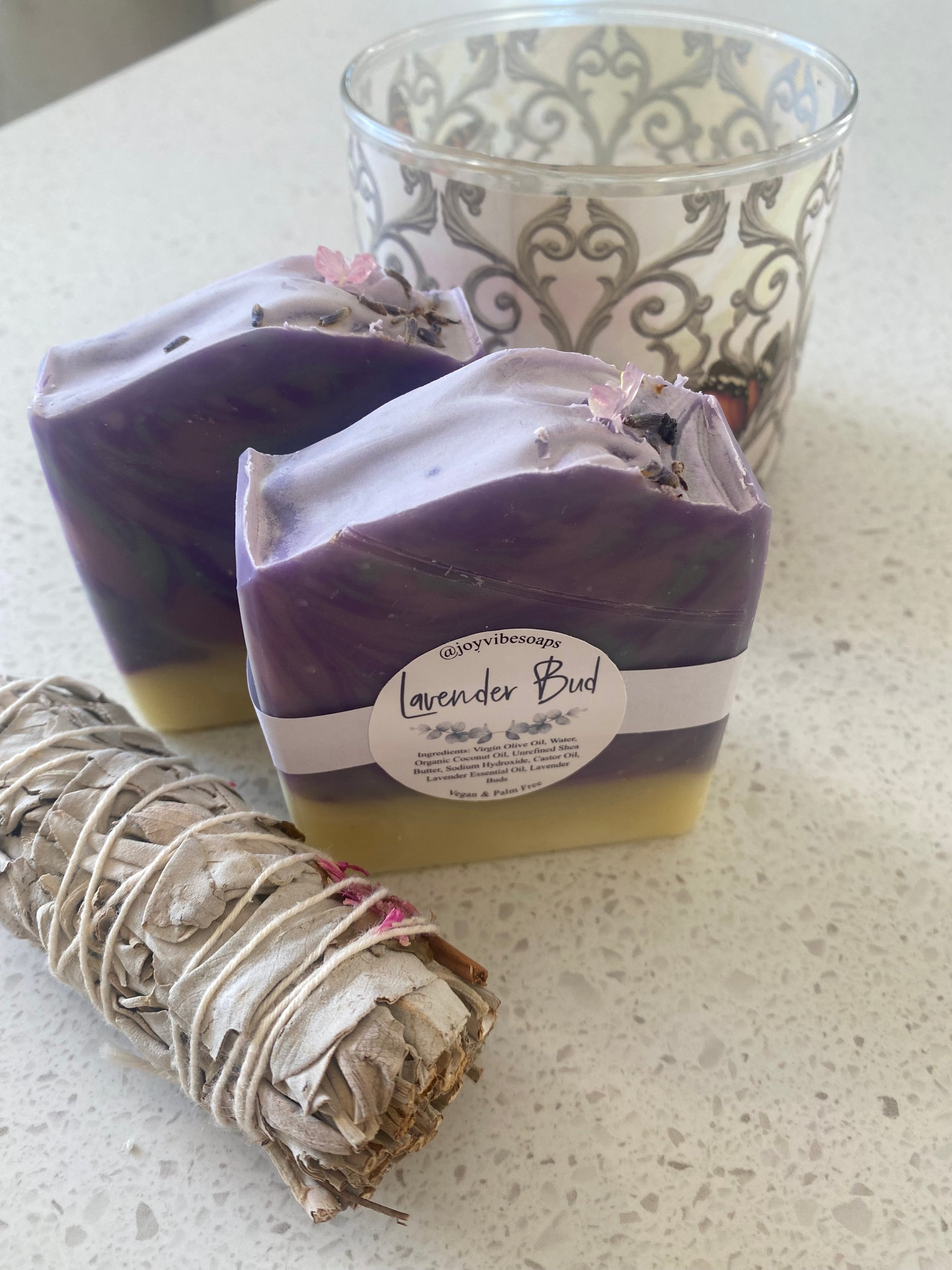 This purple, oil slick designed bar contains relaxing scents of Lavender Essential oil.